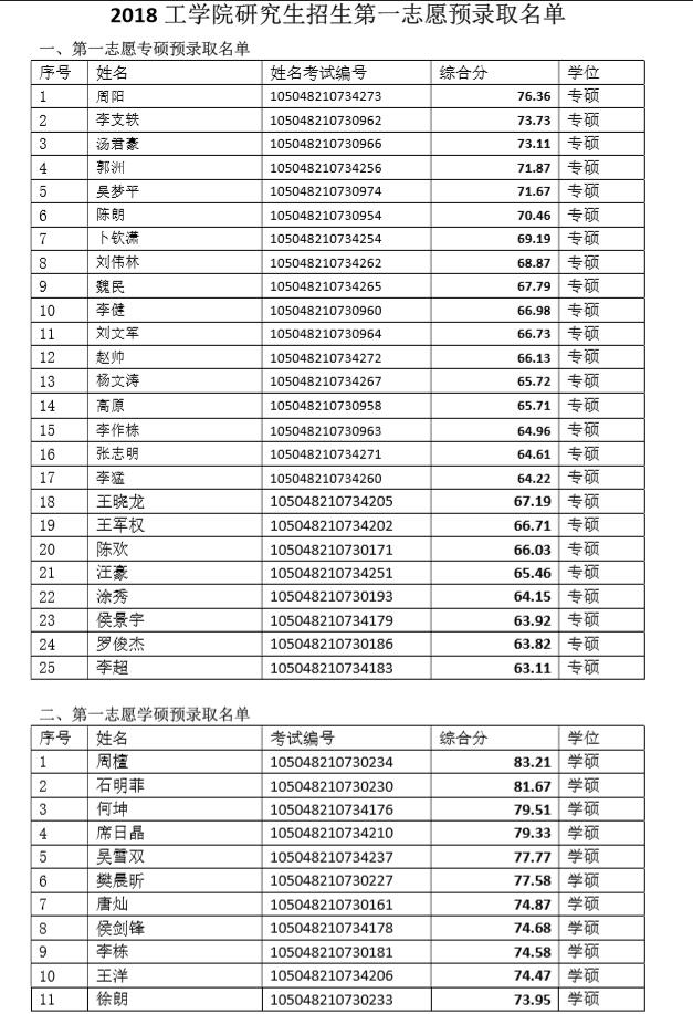 2018 英国365集团公司研究生招生第一志愿预录取名单