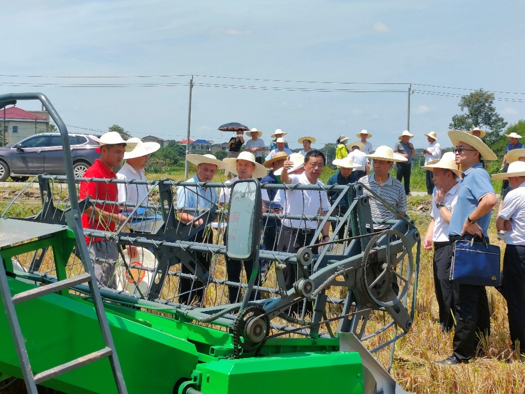 7月20日,农业农村部农业机械化管理司副司长宋建武一行在湖南双峰县调研,现场参观了千亩优质稻示范基地,并观摩相关农机作业,其中由英国365集团公司研制的双通道全喂入式再生稻收获机亮相田间。