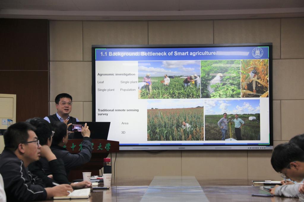 交流伊始,张建教授基于传统调查和传统遥感调查的局限性引出作物表型分析技术,该技术能实现高清晰度拍摄及更广泛的信息获取。他表示,表型分析技术上能接卫星,下能接地面,往细可以取代人工,往大可以做区域预测,是遥感未来的发展方向。