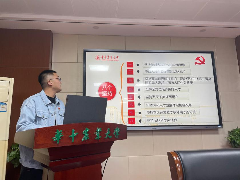 10月26日晚,水稻水生蔬菜机械化生产技术与装备研究生党支部在工程楼A111召开了10月主题党日活动支部全体成员及入党积极分子参加学习,会议由支部书记张清洪同志主持。首先由张清洪同志领学习近平总书记在纪念辛亥革命110周年大会上的重要讲话精神,分享了习总书记提出我们在台湾问题上要坚持“一个中国”原则、争取和平统一、反对国外势力干预中国内政的态度和决心。随后,丁凯权同志领学习近平总书记在中央人才工作会议上的重要讲话精神,丁凯权同志通过让参会人员一起诵读习总书记大会金句名言来带领大家更加深入的学习,引用了总书记“全方位培养引进用好人才”的讲话来作为分享的结尾。康启新同志对于本次学习体会分享到:“在人才会议上提出的对科研人员的管理和支持,是对于我们高校的科研人员的工作的支持和鼓励,能够提高我们的科研效率。”傅金阳同志说到:“在台湾问题上,我们决不妥协,要坚持‘一个中国原则’,要高举和平统一旗帜,要坚决支持共建人类命运共同体的行动。”