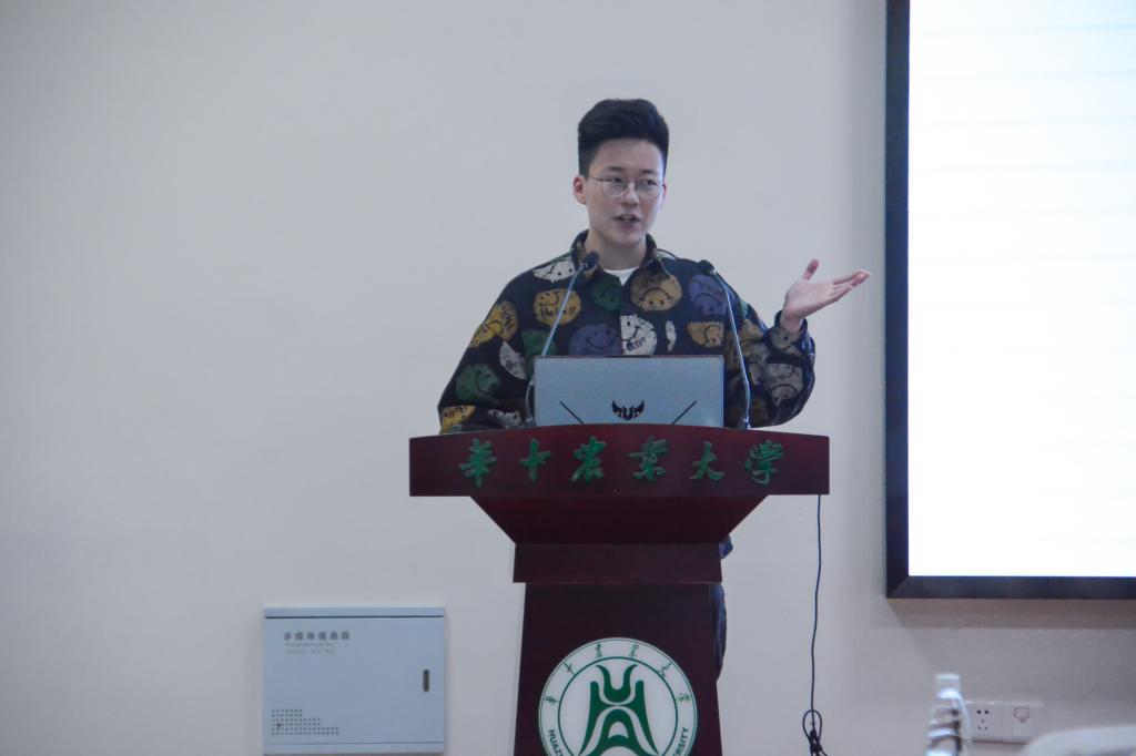 讲座开始,张子杭详细介绍了节能减排的历史,着重强调了碳减排的必要性,通过介绍从第一次工业革命以来全球平均气温、温室气体含量的变化数据来说明碳含量的急剧增长问题的紧迫,并介绍了我国应对碳排放的举措,介绍了相关政策,让同学们对节能减排有了初步的认识。随后,张子杭重点讲述了自己参加大学生节能减排科技竞赛的经历。以自己的两项参赛作品为例,在工艺流程、创新设计、研究背景及意义方面介绍自己研究项目的情况。他在讲述将污泥转化为蚯蚓有机肥时将思路、实验过程等以流程图的形式一一展现,让在场的同学能够直观了解他的思路与想法。与此同时,张子杭还分享了自己参加竞赛的过程,讲解了竞赛的注意事项与前期准备,并鼓励同学们积极参与。