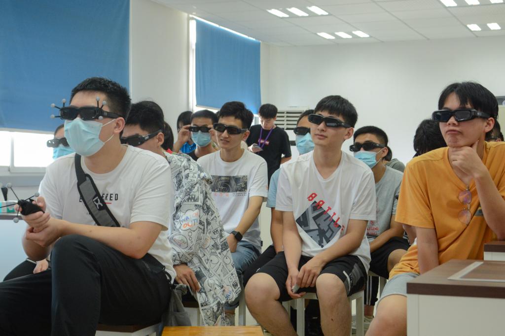 最后一场的虚拟仿真活动,实验室构建了智能机器人、玉兔号、飞机发动机等大型机械的拼装场景。新生通过佩戴3D眼镜就能体验3D拼装的整个过程。负责本次活动的李旭荣老师介绍到:“在传感设备的帮助下,虚拟仿真实验可以让同学们坐在教室,就能全方位的接触各种高端器械结构,甚至可以自己模拟操作,对同学们的学习非常有帮助。”一位新生表示:“我十分喜欢这次活动,我感觉在虚拟场景中拼装模型是一次新奇的体验。”