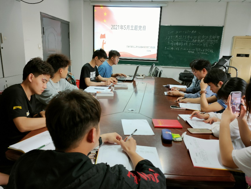 2021年5月27日,为深入学习贯彻习近平新时代中国特色社会主义思想,学党史、悟思想、办实事、开新局,以优异的成绩迎接中国共产党成立一百周年,农业机械化工程与装备研究生第二党支部在工程楼B201开展了党史专题学习暨“回顾百年历程 启程崭新未来”5月主题党日。会议由支部书记张帅主持。