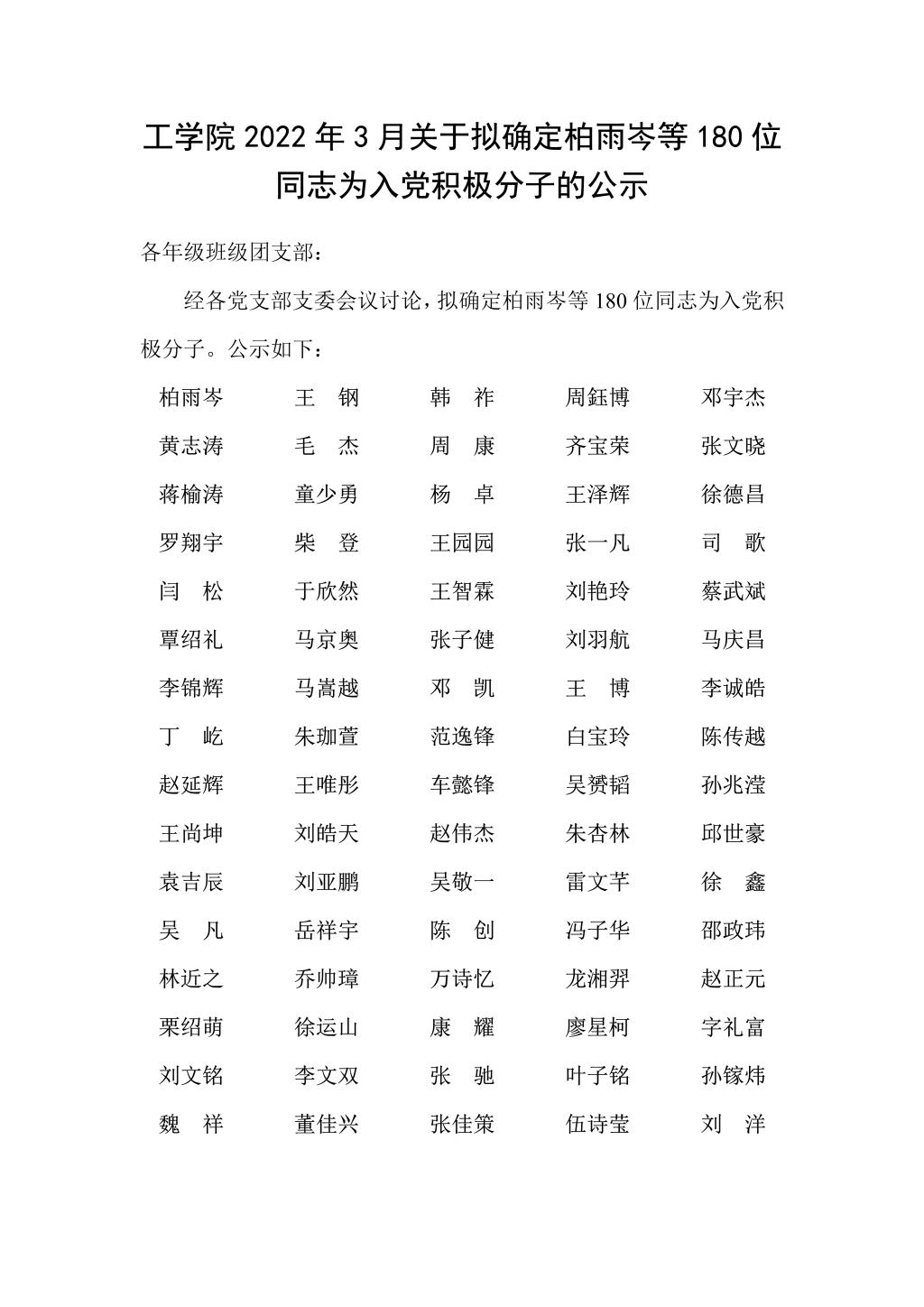 英国365集团公司2022年3月关于拟确定柏雨岑等180位同志为入党积极分子的公示