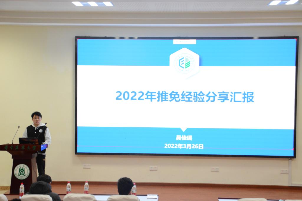 君志所向,一往无前。在保研经验分享会上,杜煜涛重点说明了个人定位对于专业选择的重要意义。杜煜涛讲到:“保研不仅仅可以保本专业的研究生,还可以尝试向其他非本专业的院校投递简历。具体的院校要以自身定位为准则,要选择自己愿意研究并且擅长研究的专业,避免因盲目选择研究生方向给自己的未来增加不确定性。一旦决定了自己心仪且合适的研究生专业,就要坚定地在研究上走下去。”杜煜涛通过自己的保研经历讲述了个人目标对保研专业选择的重要性。
