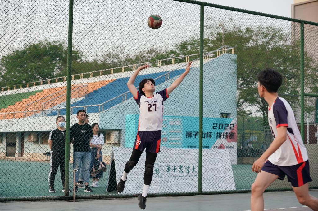 在我院男排与食科男排比赛之初,我院谭周石再次用自己强势的发球确立了八分的领先优势。为保存体力,双方都没有展现出很高的攻势。我院男排稳扎稳打,不骄不躁,逐渐得分,最终,工学男排25—8食科男排先下一城。第二局,杜俊老师提出建议,希望我院男排能够打的更加激情,更有活力一些,为淘汰赛做准备。于是,我院男排轮换了一些队员的同时刻意增加了三号位和二号位的进攻,我院男排的热情也激发了食科男排的斗志,食科男排对我方发起了多次有效进攻,场面来回拉扯不断,我院男排则愈战愈勇,廖彼得连续助飞雷宗霖扣球得分。最终工学男排25—19拿下了第二局比赛,我院男排以五战全胜的战绩晋级8强。