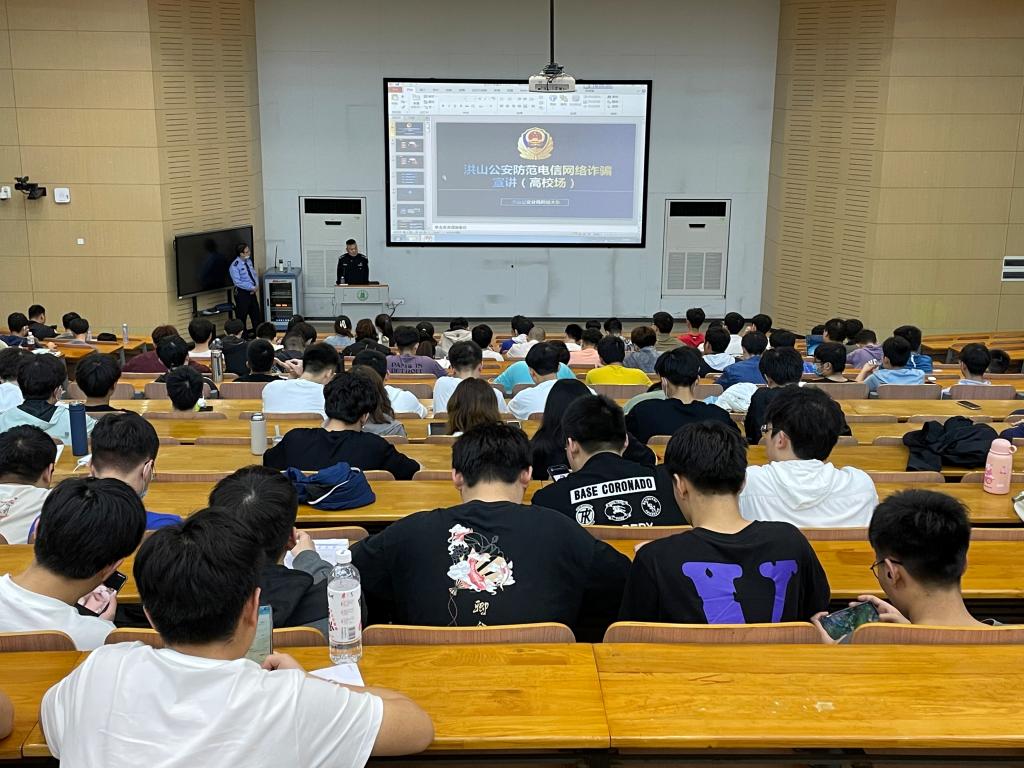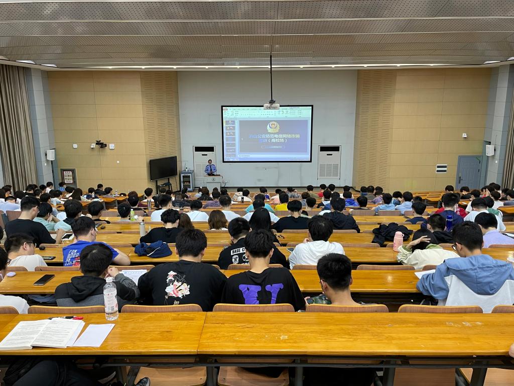 针对当前电信诈骗手段不断提高,诈骗花样不断翻新的特点,龚德军警官向同学们强调了做好个人安全防护的重要意义,以及常见的电信网络诈骗类型与防范措施。