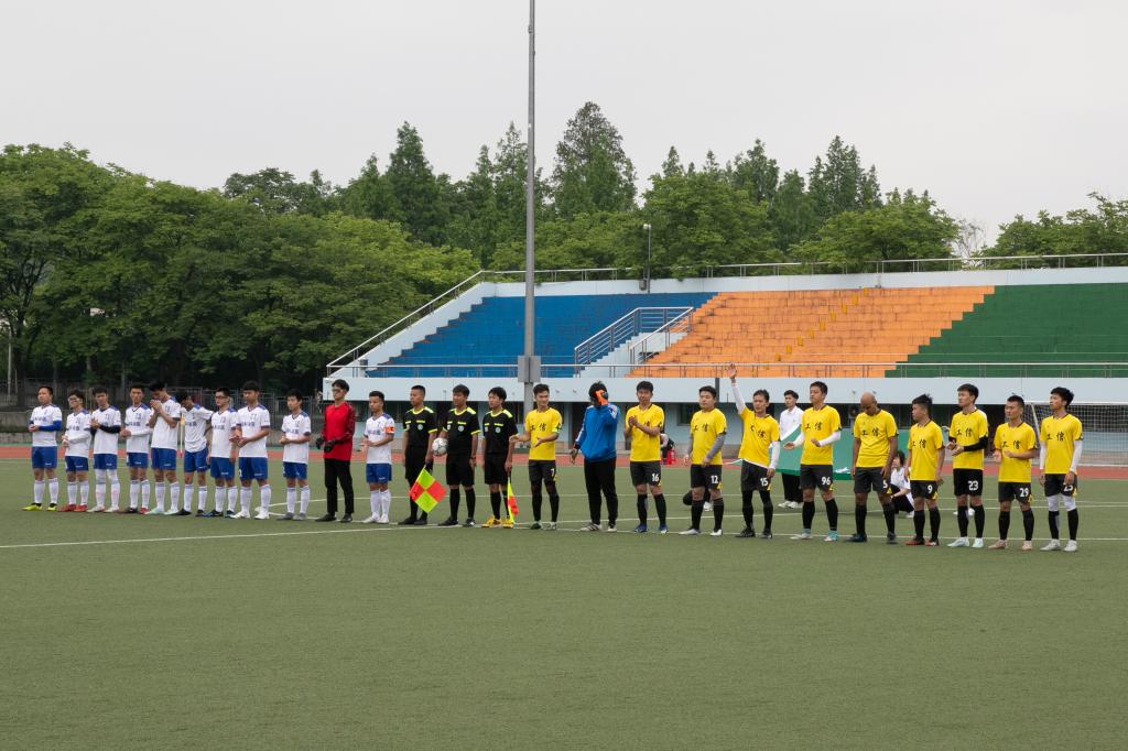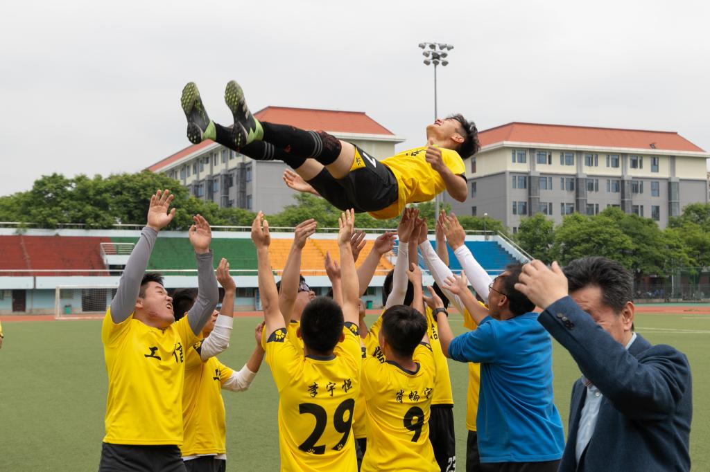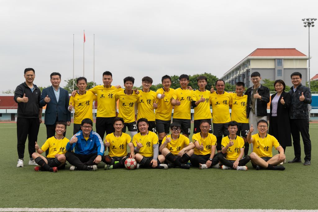4月29日中午,2022“狮子山杯”足球赛(研究生)男足季军争夺赛激情开战。在东运动场足球场上,身穿黄色球衣的工信联队以2:1战胜身穿白色球衣的动科动医学院队,夺得季军。