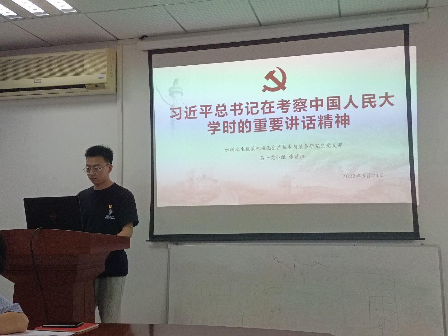 5月24日,水稻水生蔬菜机械化生产技术与装备研究生党支部在工程楼B422开展5月份主题党日活动。