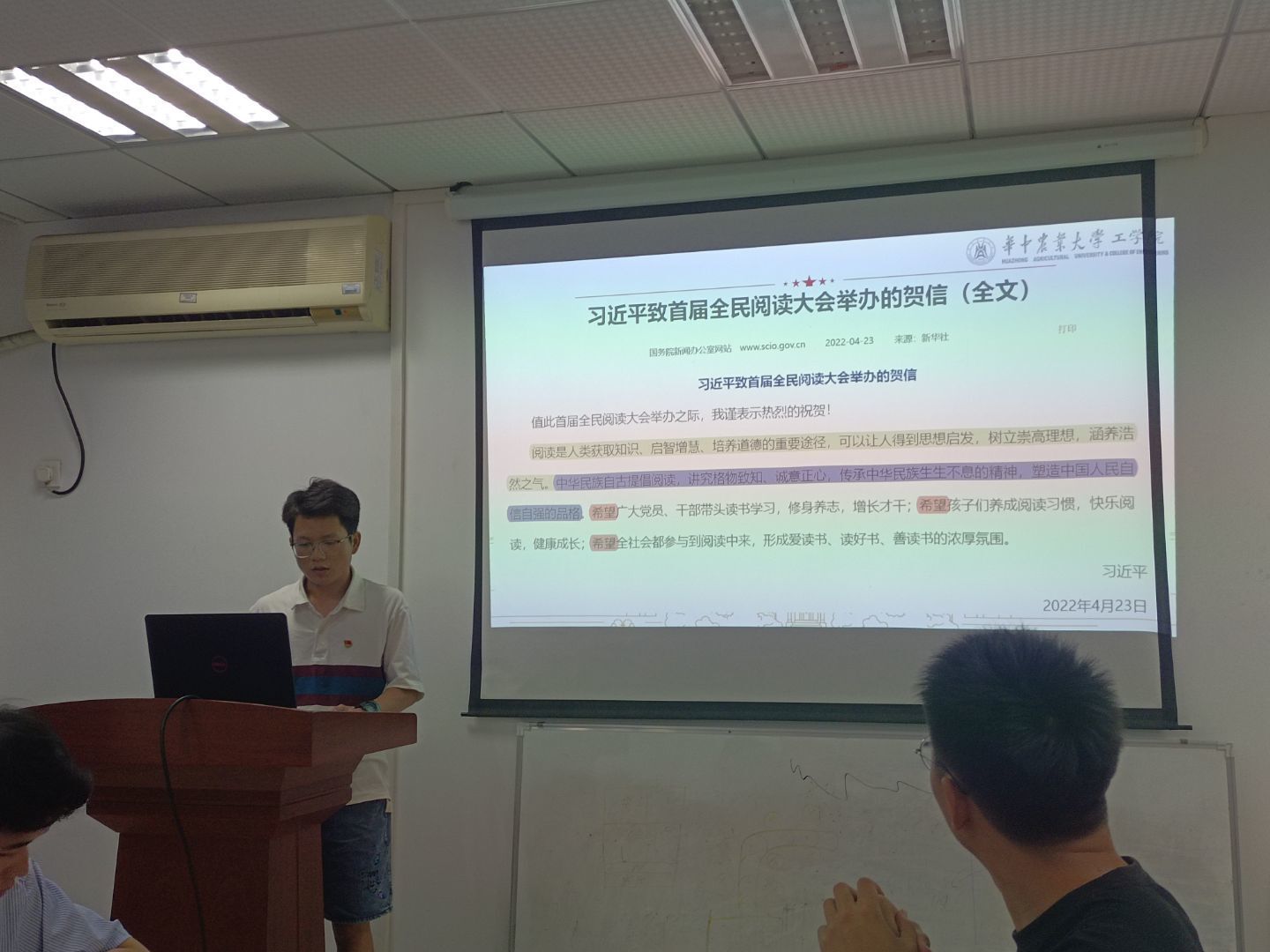 丁凯权同志领学习近平总书记致首届全民阅读大会举办的贺信