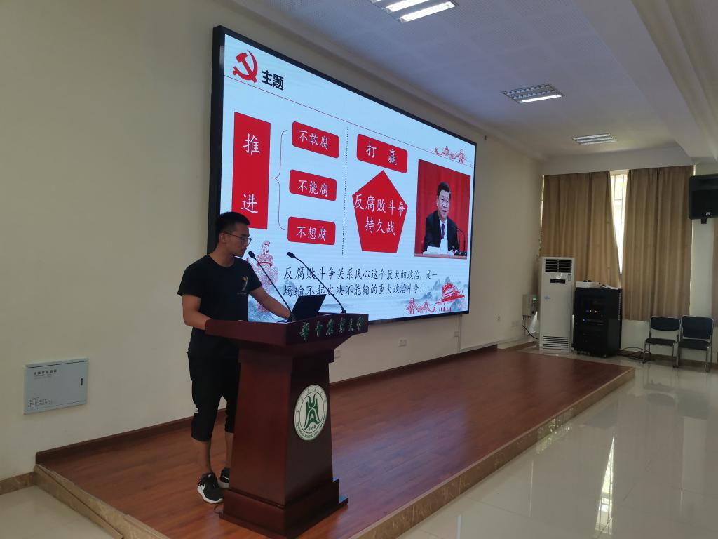 领学环节,油菜机械化生产技术与装备研究生第一党支部书记张季钦在领学习近平总书记在中共中央政治局第四十次集体学习时的重要讲话精神时谈到,我们要大力弘扬中华民族固有的清正廉洁传统美德,提倡廉洁自律,秉公办事,不徇私情,不谋私利,清白做人的精神;我们每个共产党员都要从自己做起,坚持清正廉洁,一身正气,人尽其责,在自己的岗位上展现出应有的精神风貌。最后他以名句“出淤泥而不染,濯清涟而不妖”与各位党员同志共勉。
