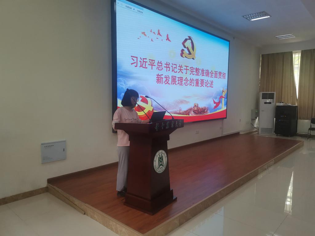 农业生物质增值化技术与装备研究生第二党支部书记李楚仪在领学习近平总书记关于完整准确全面贯彻新发展理念的重要论述时谈到,我们要完整、准确、全面贯彻新发展理念,必须更加注重共同富裕问题,加强系统集成、精准施策,加强前瞻性思考、全局性谋划、战略性布局、整体性推进,这是经济社会发展的工作要求,也是十分重要的政治要求。同时她也提到,各级党组织和领导干部要有很强的责任意识,无论什么时候,该做的事,知重负重、攻坚克难,顶着压力也要干,发现了问题的苗头就要及时处理;各级党委和政府要落实各项工作责任制、科学排兵布阵、层层压实责任、推动各级党组织、各个部门、各条战线、各行各业尽忠职守。