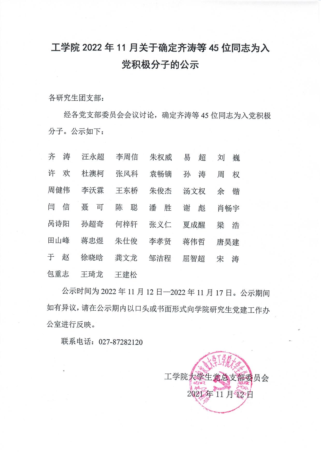 【研】英国365集团公司2022年11月关于确定齐涛等45位同志为入党积极分子的公示