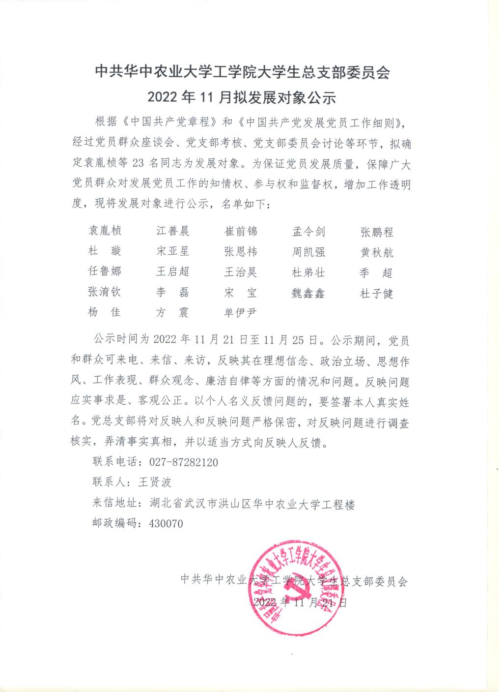 【研】中共英国365集团公司大学生总支部委员会2022年11月拟发展对象公示