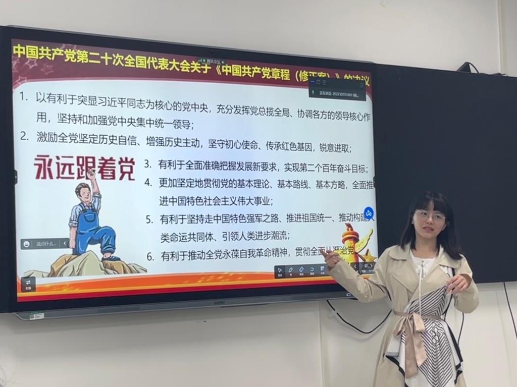 领学结束后,杨争鸣同志带领支部成员开展“温故知新”问答环节。姜儒娇同志主持“知识拓展”学习环节,并鼓励同志们不仅要对主题党日要求的学习内容进行了解,还要结合二十大的精神扩宽自己的知识面。