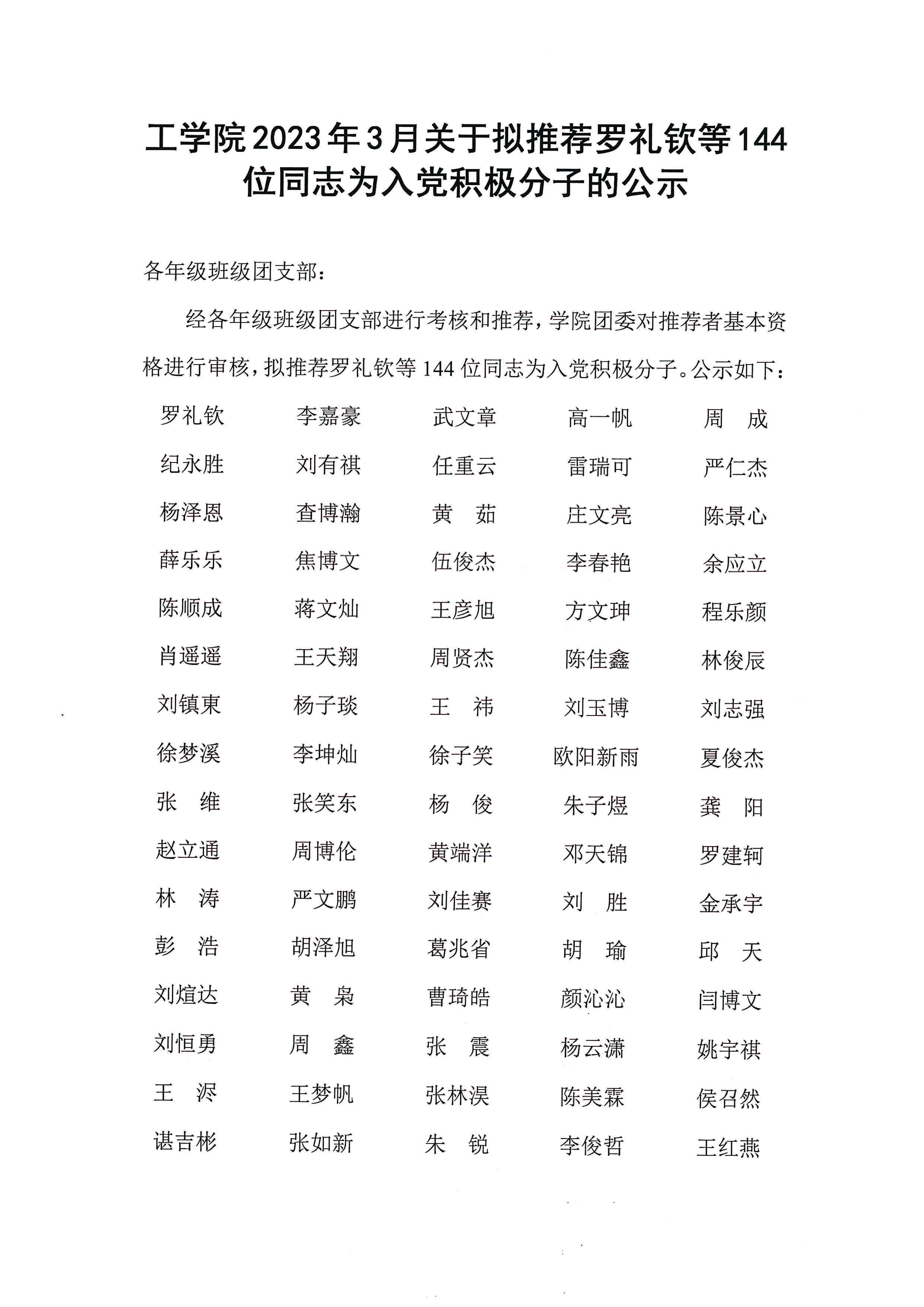 英国365集团公司2023年3月关于拟推荐罗礼钦等144名同志为入党积极分子的公示