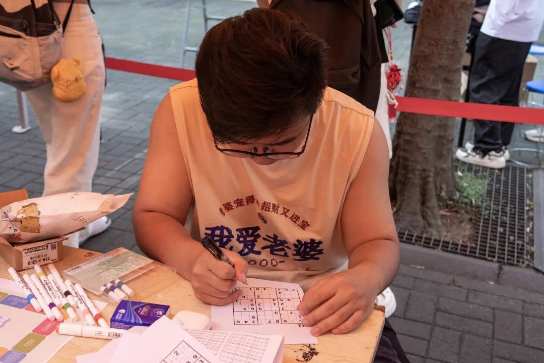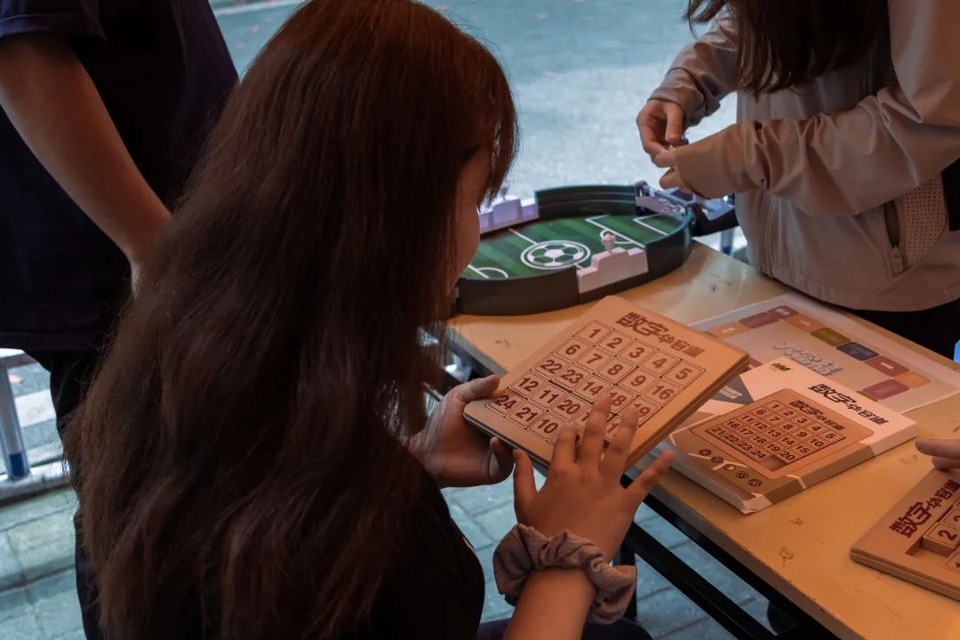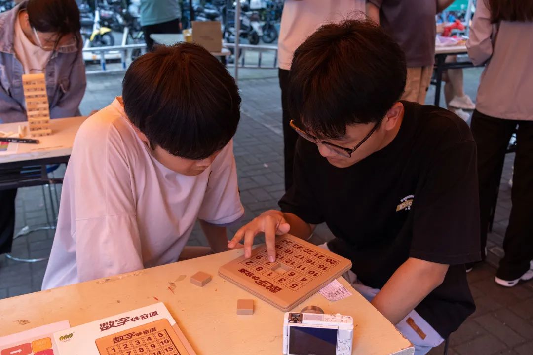 而“战况”最为焦灼要数积木游戏了,同学们小心翼翼堆起的高塔在一次次取木块中变得岌岌可危,最终“呼啦”一声,塔不堪重负倒了,迎来大家一阵唏嘘。放眼望去,此时的活动场地上,有全神贯注攻克华容道的同学,也有颤颤巍巍挑战穿越火线的同学,还有同学挑战烧脑的数独,空气里弥漫着语笑喧阗。各式各样的挑战都给同学带来快乐的体验和难忘的回忆。参与的同学们大多完成了挑战,获得了相应的积分,兑换到了心仪的奖品。