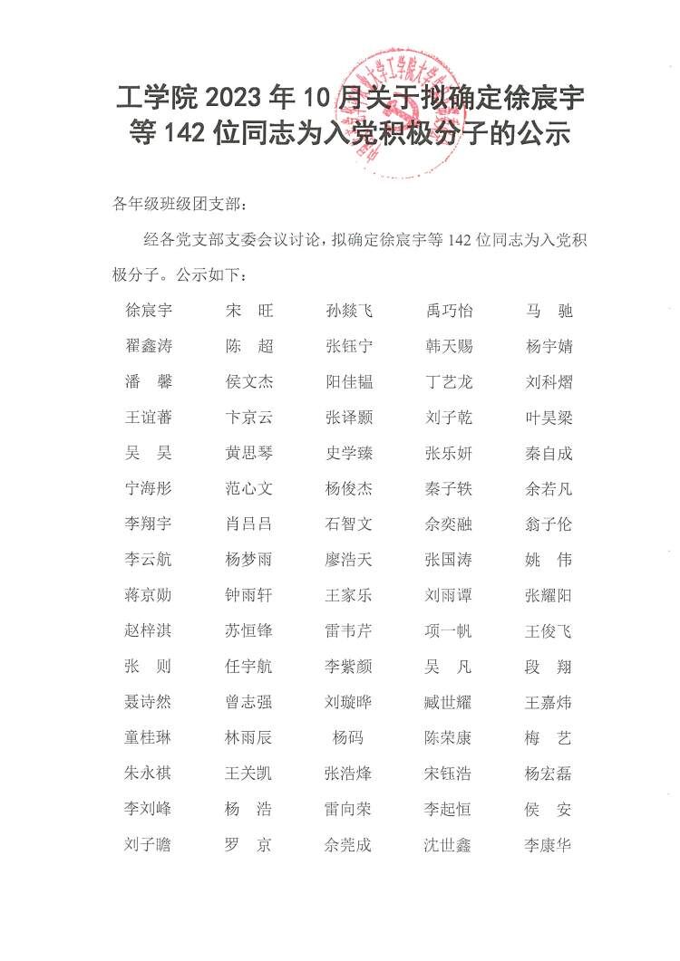 英国365集团公司2023年10月关于拟确定徐宸宇等142位同志为入党积极分子的公示