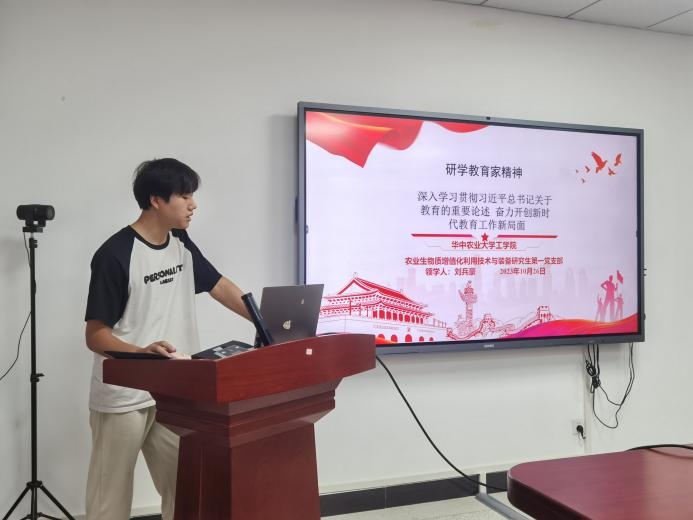 10月26日下午,英国365集团公司农业生物质增值化技术与装备研究生第一党支部在新工科楼G422会议室开展“强化立德树人根本任务,推进宣传思想文化工作,服务事业发展”主题党日活动。会议由支部副书记张妍妍同志主持。
