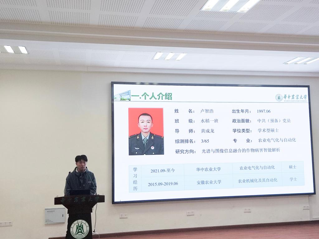 卢智浩自入学以来,伤病的复发对他的学习生活造成了很大影响,多次的住院已经使他身心疲惫,但是他最终克服了困难,没有落下自己的科研学习进度,他每周向导师开展汇报,将阅读的文献一一形成阅读报告,在查阅文献的过程中形成处理方法技术等总结性文档和表格。最终以第一作者发表SCI论文一篇,以第二作者和第三作者发表SCI论文两篇,登记软件著作权两项,并获得了三好研究生荣誉称号。分享科研学习经验时,他给同学们提出了几点建议,一是要尽可能的提高成绩,参加学术讲座,通过四六级,这些对我们将来的科研和就业都很重要。二是在学习之余积极参与志愿服务、文体活动,促进个人全面发展,主动参与党支部组织的党日活动,向优秀党员同志们学习。