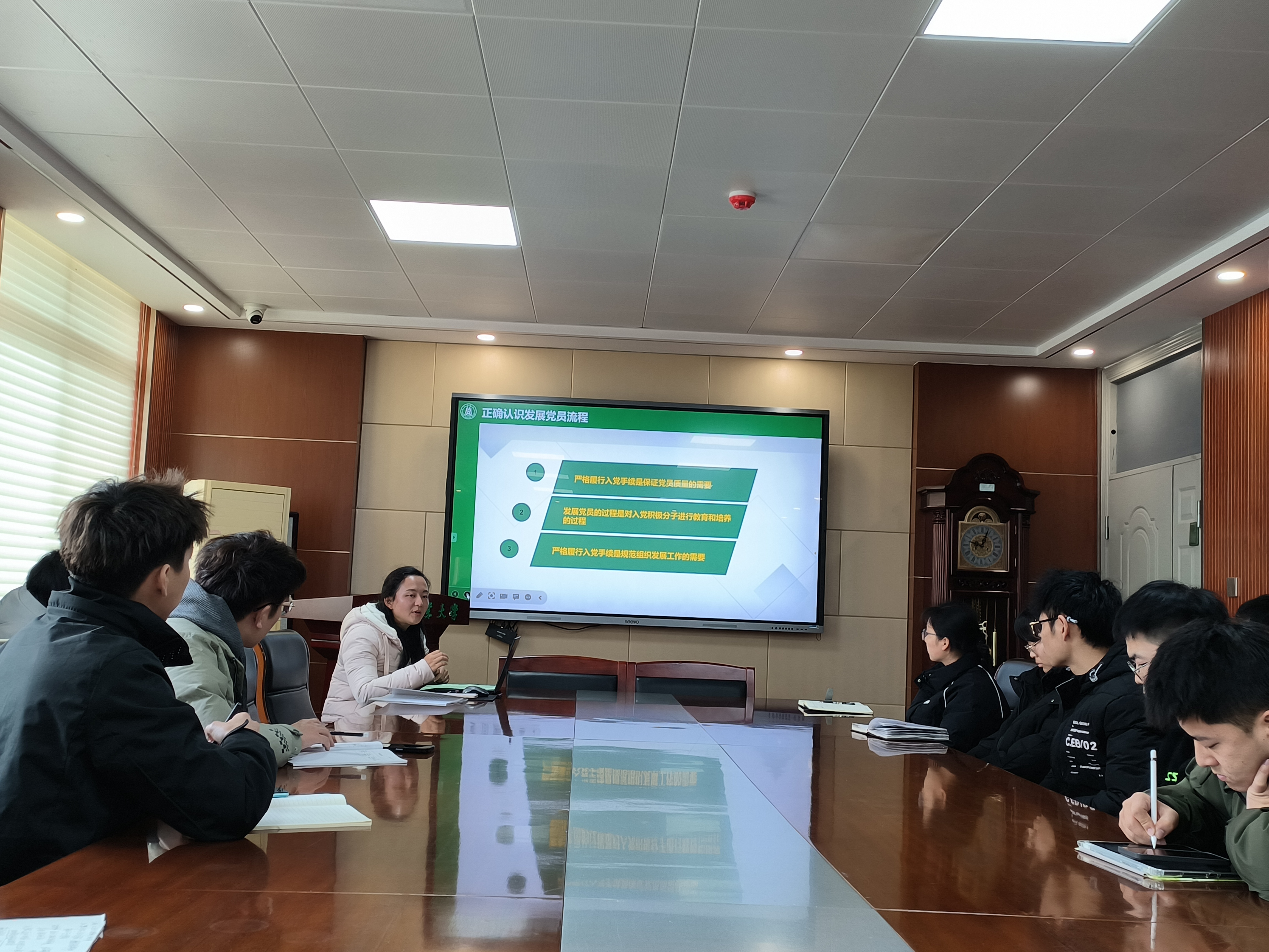 最后,卜祥利老师补充道,全体党员应当明晰入党流程,严加审阅各项材料,做到流程严格化规范化,以做清楚、做明白、做仔细、做认真之态度热忱投入党员工作实务。