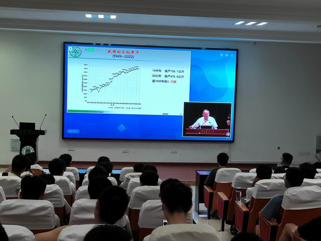 2024年9月2日,由教育部高等学校农业工程类专业教学指导委员会主办的《全国高校农业机械化及其自动化等专业开学第一课》播出,课程由罗锡文院士主讲,主题围绕“与共和国农机事业共成长——水稻的昨天、今天和明天”展开,我院研究生积极参与观看学习。其中2024级研究生新生在工程楼A111集中观看、其他年级研究生在宿舍、工作室等场地观看。节目结束后,同学们纷纷表示受益匪浅,感触颇深。