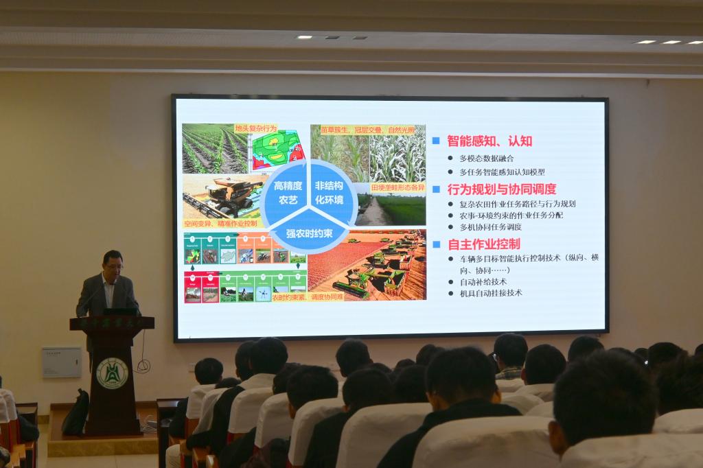 最后,孟志军与在座师生探讨了智能农机未来的发展方向。他表示,随着人工智能、物联网、大数据等技术的快速发展,未来的智能农机将具备更高的智能化水平,并能够实现全程无人化作业。然而,当前智能农机的普及依然面临诸多挑战,如高昂的设备成本、复杂的操作培训需求以及数据安全问题等。他呼吁学术界和产业界加强合作,加速技术创新,并希望未来能够形成更加完善的政策和技术支持体系,推动智能农机在农业中的普及应用。