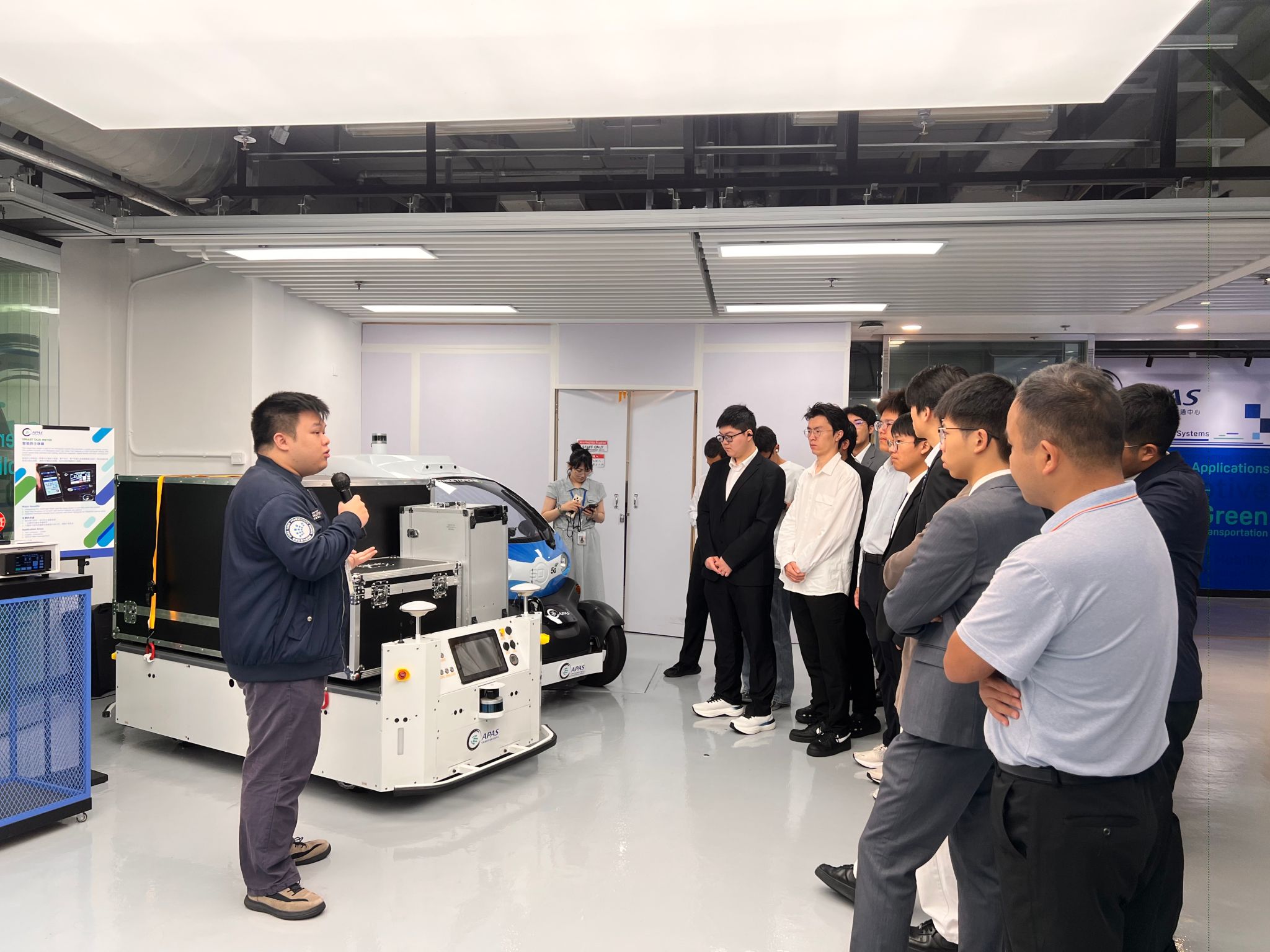 访学期间,为全面了解香港城市建设现状与科技创新前沿,师生一同前往展城馆、生产力促进局等地,参观了配备自动驾驶系统的四翼无人机、智能储能设备及电车充电小车等前沿科技产品。生产力促进局专家介绍了从内地引进人才并进行后续培养的全流程。顾泽宇同学表示,对香港的人才培养体系有了更深入的认识,也表达了未来赴港就业发展的强烈意愿。