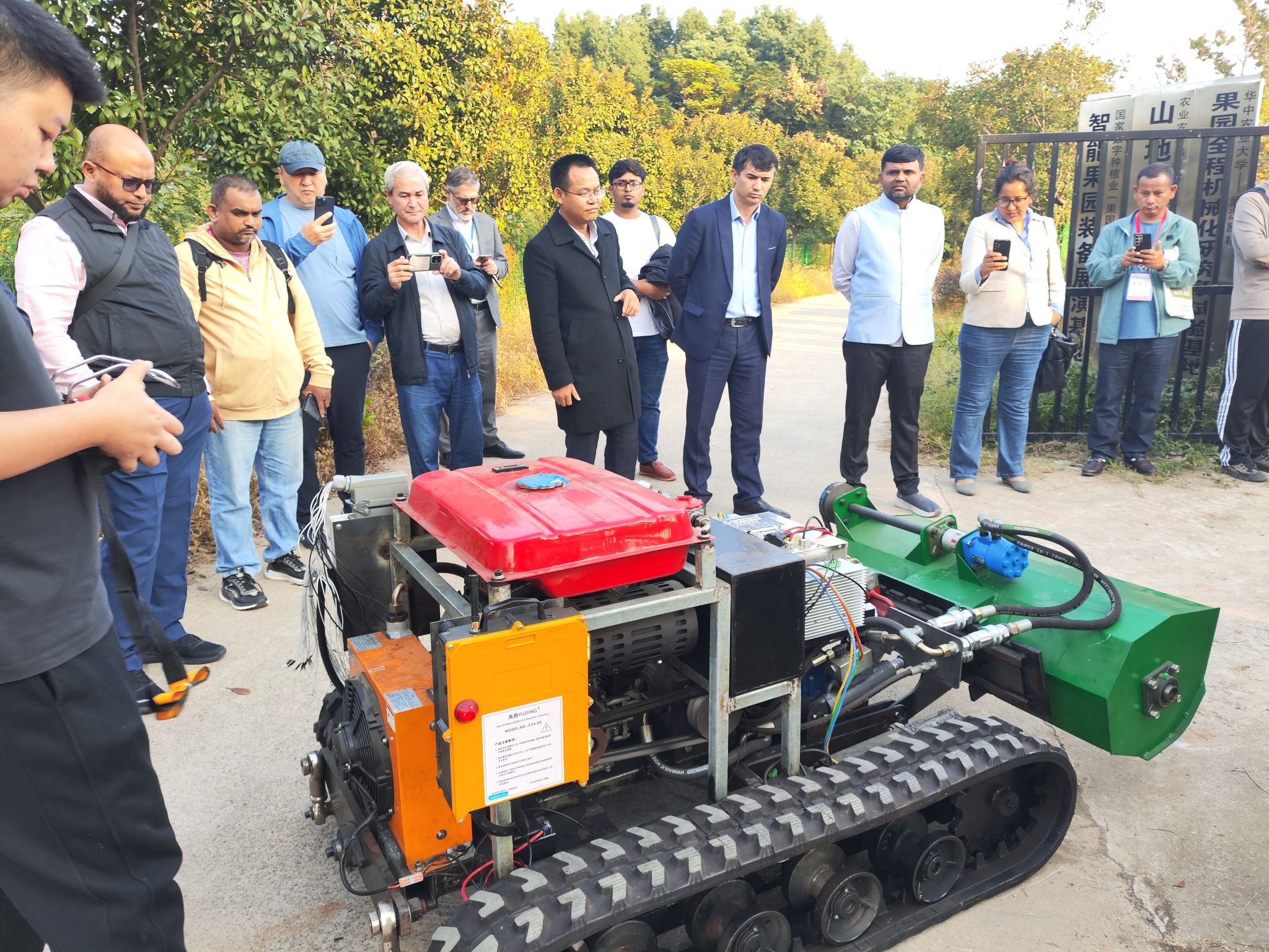 会后,代表团参观了我校国家数字种植业(果园)创新分中心、农业农村部油菜全程机械化科研基地、果园轨道运输基地,全面了解我校在智能装备领域的教学科研设施与创新成果。代表团成员高度赞扬了我校研制的油菜播种机、轨道运输机、采摘机械手等智能农机装备,并表示将全力支持相关科研合作。
