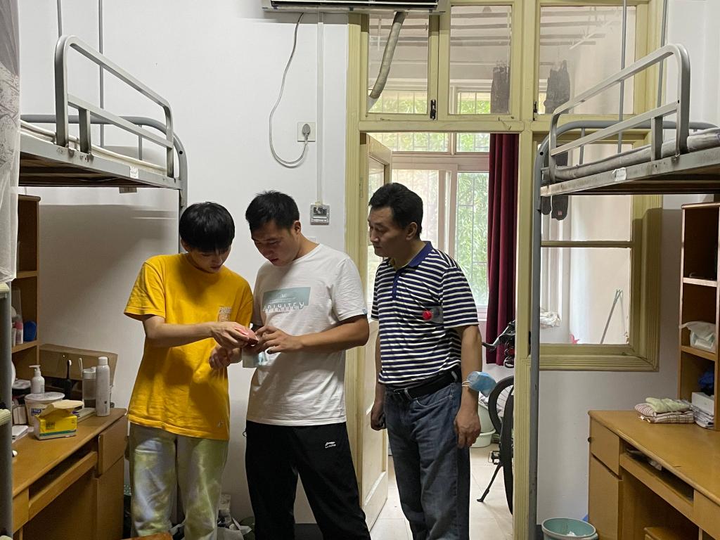 9月3日下午,学院党委书记明庭庆与学生工作办公室老师们一起深入学生宿舍,与返校学生谈心交流。在荟五207宿舍,明书记得知肖逸等四名学生学习成绩优秀,有望保送研究生时,明书记对几位同学的努力学习表示赞赏,也鼓励学生能够多走出去看看,充分利用大四时间做一点有意义的事,常怀感恩之心,常念相助之人,常存敬重之意。荟五140宿舍,遇到了正在准备考研的冯汛,明书记鼓励其要找准定位,选择合适的报考院校,坚持不懈必会成功。在荟园八栋,明书记与刚返校收拾宿舍的2020级同学进行了交流,他提醒同学们要好好总结大一学年的学习生活,认真规划自己的大二生活。