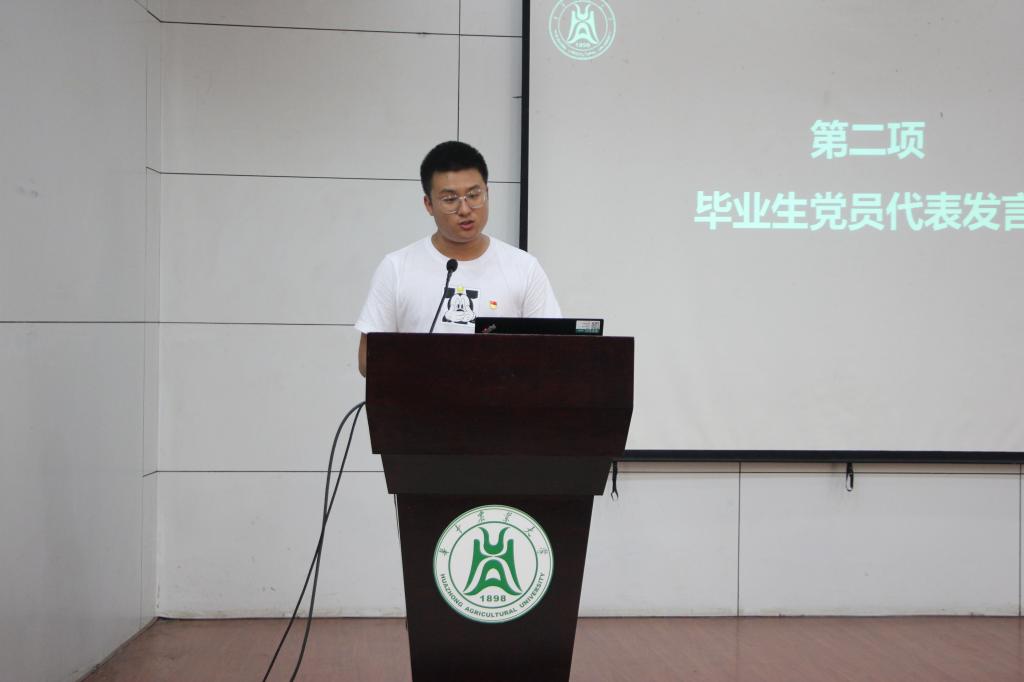 毕业生党员李自拓表示:“作为新时代的大学生党员,我们衷心祝愿伟大的党永葆青春、继往开来、乘风破浪。作为新时代的华农学子,工学培养了我们坚守初心的执着、追寻完美的品质和心怀家国的担当。我们将在今后的人生道路上,努力践行‘勤读力耕,立己达人’的校训精神,铭记工学所培养和赋予我们的能力,以及我们作为新时代青年党员所应当具备的品质和肩负的使命责任,不忘初心、砥砺奋进,心怀天下、勇敢前行。”