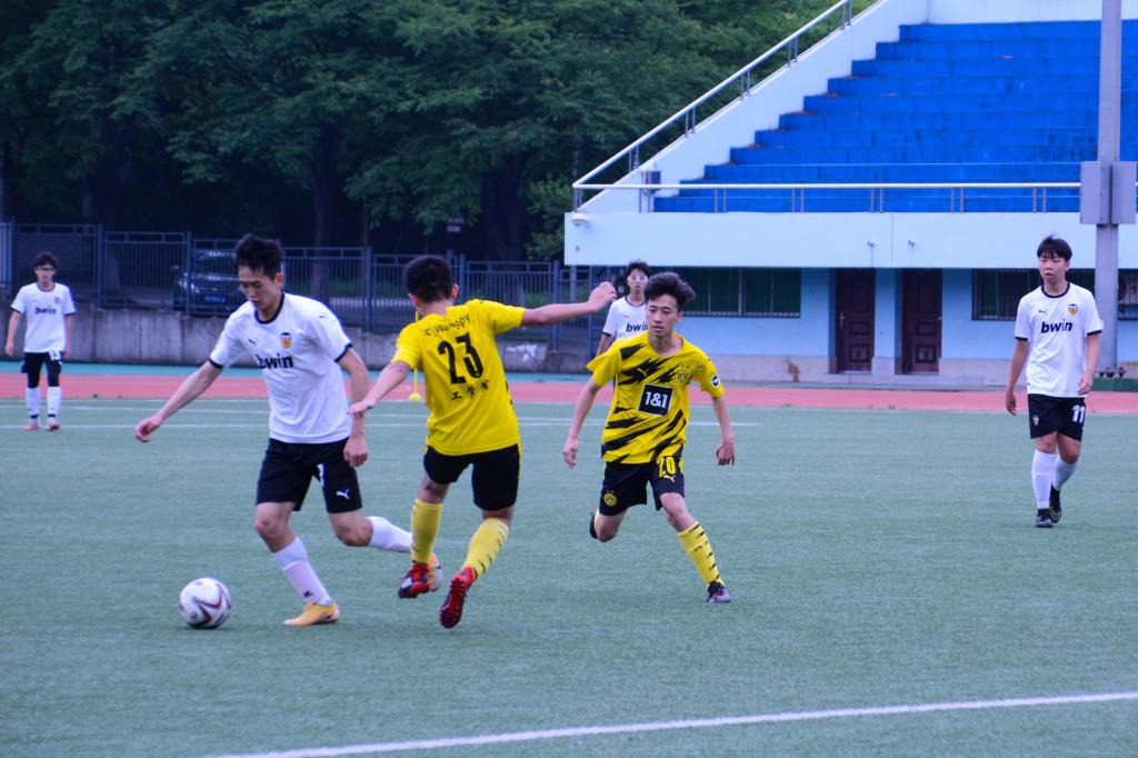 整个赛程中,工学男足充分发挥优点,不断传导球进行战术沟通的同时,力争突破对手布防。在八强赛中,虽然下起了大雨,依然阻挡不住球员们在赛场上拼搏的热情。经过多次阻断对方进攻,并且利用流畅的传导球,突破对手防线,以1:0战胜植物科学技术学院,艰难冲入四强。