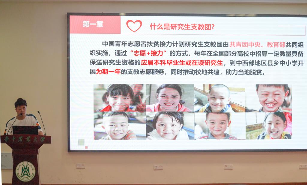 支教团成员赵祥宇同学分享了自己 “一路学习、一路探寻” 的支教故事,讲述了在支教志愿服务过程中,志愿者们了解实际情况、发现学生需求、帮助学生成长的动人故事,旨在说明研究生参与支教的过程,不仅是服务乡村基层建设、振兴乡村教育事业的过程,更是让个人的综合能力有所提升、得到切实成长发展的过程,鼓励大家积极加入支教团,收获感动和成长。