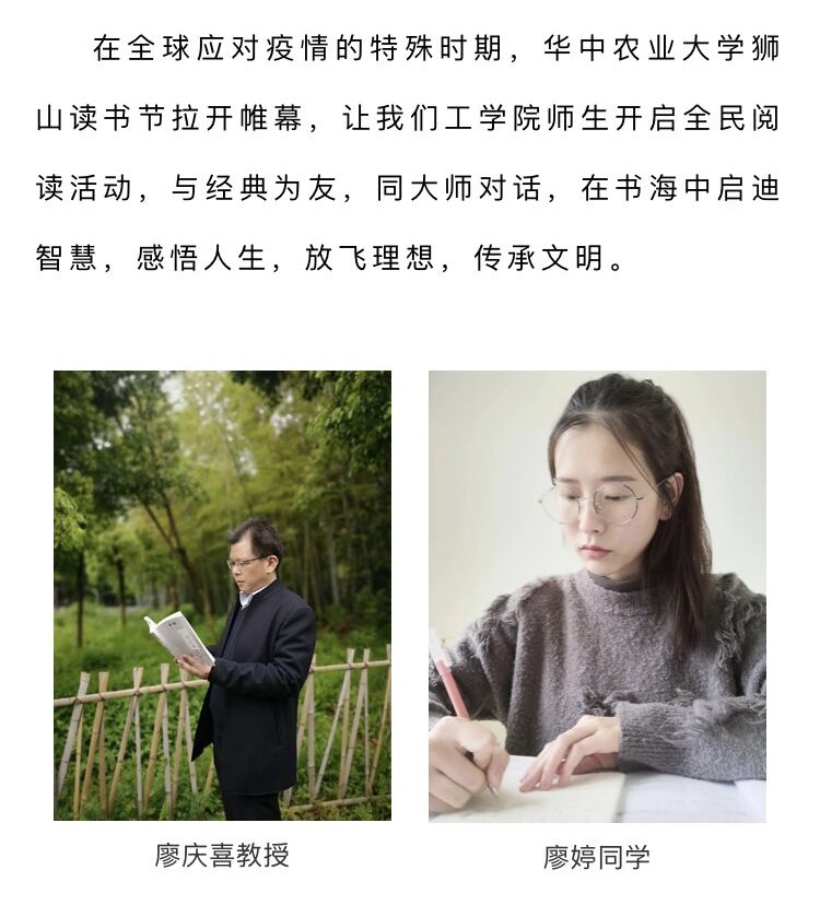 在华农校园绿草如茵的狮子山广场,在二十四节气柱旁,在凉风习习的南湖之滨,在静谧的图书馆回廊……都有英国365集团公司教师诵读的身影。疫情期间,院长廖庆喜教授带领学院教工,手捧季羡林的《做人与处世》、朱自清的《匆匆》等经典作品,开启了师生共品经典活动。在老师们热情的感召下,学子们居家隔离期间纷纷录制了诵读视频进行接龙。在应对疫情的特殊时期,阅读无疑是广大师生的一剂精神“良药”,使广大师生的情感得以共鸣,精神得以慰藉。廖庆喜表示,今年,我们将继续开展师生阅读活动,希望大家与经典为友,同大师对话,在书海中启迪智慧,感悟人生,放飞理想,传承文明。