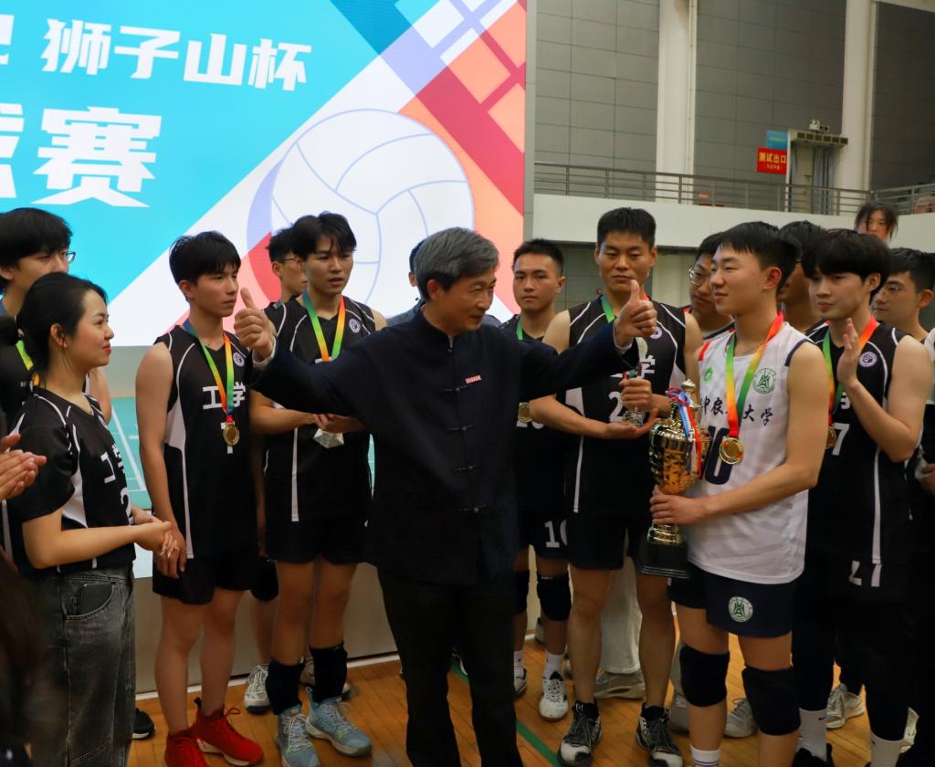 在颁奖典礼上,全场的嘉宾、观众以及工作人员都为工学男排欢呼,校党委书记高翅老师亲自为获胜的队伍颁发了奖杯与奖牌,并与我院排球队进行了亲切交流。至此“狮子山杯”排球赛完美落幕,英国365集团公司机械1801班谭周石荣获最佳球员,2021级博士班赵永坤荣获最佳主攻手,机械1901班廖彼得荣获最佳二传,英国365集团公司教师杜俊荣获最佳教练。