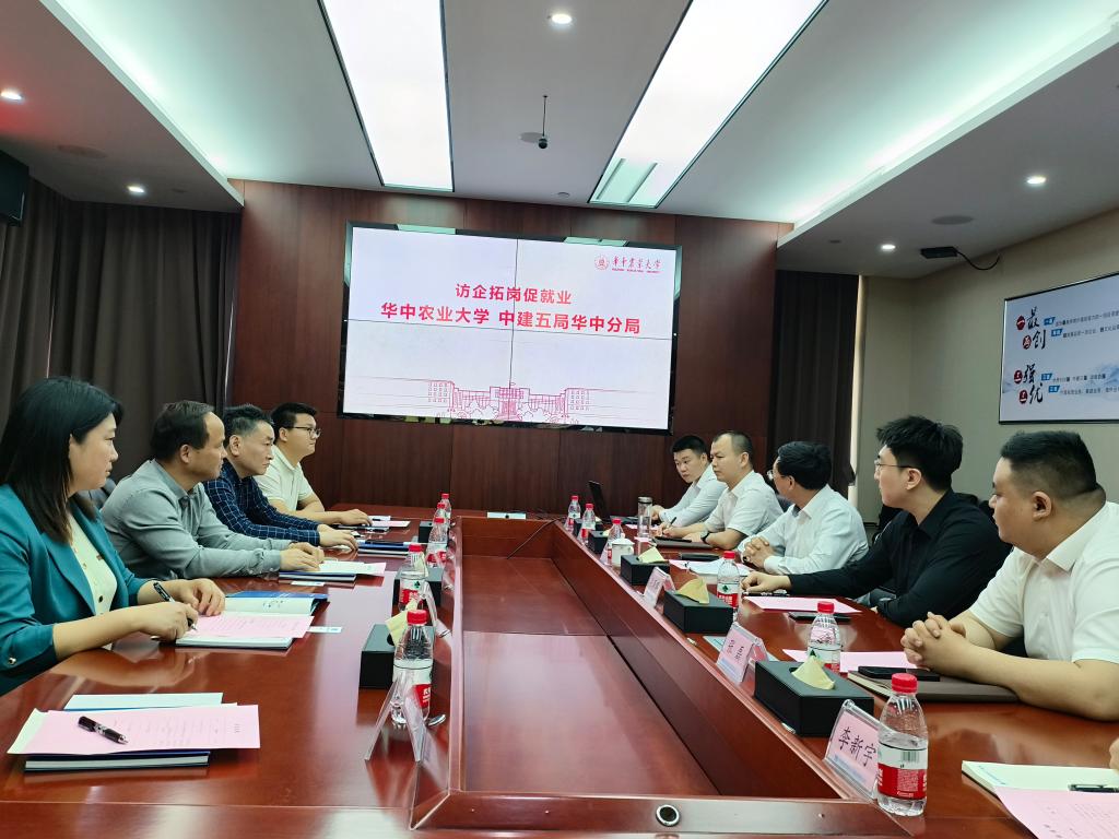 在中国建筑第五工程局有限公司,华中分局副局长朱保才、市场与项目管理部总经理等对王建鸿一行的到访表示热烈欢迎。座谈会上,朱保才介绍了公司的发展概况、业务布局、校企合作及未来发展等情况。双方结合2023届毕业生就业工作及2024届毕业生实习工作进展交流了人才培养和校企合作相关情况,并就实习基地建设、科研项目合作、校企课程共建等工作进行了深入交流。
