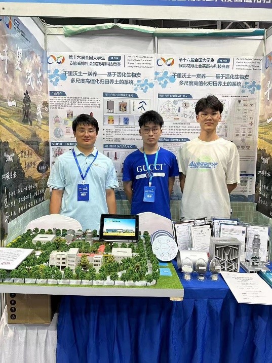 由易宝军老师指导,华文彬、官子豪等同学申报的作品“千里沃土一炭养——基于活化生物炭多尺度高值化归田养土的系统”斩获全国二等奖。作品从农业废弃物处理和土壤提质两个大背景出发,设计炭化活化和土壤养护2个体系,下辖5个单元,以生物炭为核心打造“绿色循环”的农业发展模式,利用能源与环境的学科交叉,促进“3060”双碳目标的实现。