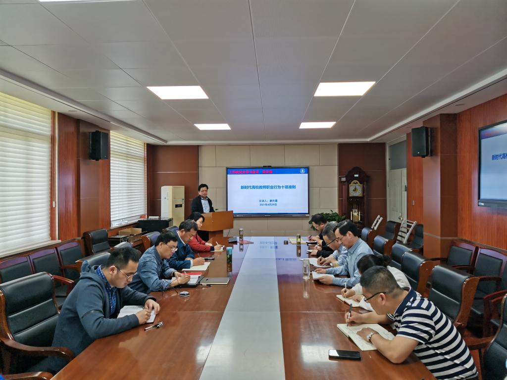 4月29日下午,英国365集团公司在工程楼A201会议室举行党史学习教育活动,院长廖庆喜教授讲授了《新时代高校教师职业行为十项准则》专题党课。学院领导班子成员、教工党支部书记、教师代表等参加此次学习。