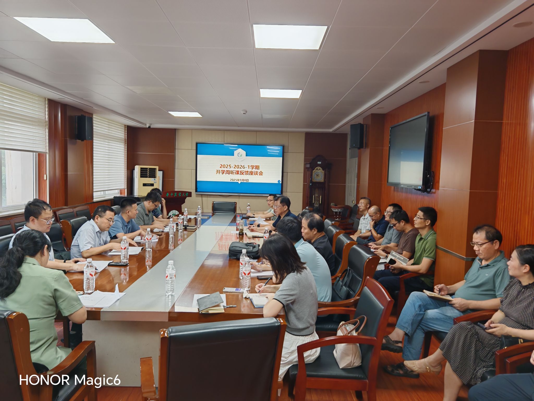 9月8日下午,学院在工程楼A201会议室召开2025-2026-1学期“开学第一课”听课反馈座谈会。参与听课的学校相关职能部门领导、学院领导、各系主任以及授课教师参与了座谈会,会议由学院副院长廖宜涛主持。他说,开学第一天听课活动是学校坚持多年的优良传统,是学院教学质量监控体系的重要一环,今年,不仅校本部组织开展了听课,学院党委书记明庭庆等同步在襄阳书院也进行了开学听课。他强调说,今年10月份,我校将接受教育部本科教育教学审核评估,各任课教师,基层教学组织要认真备课,加强磨课,提高教学效果,真正做到以评促建,以评促改。