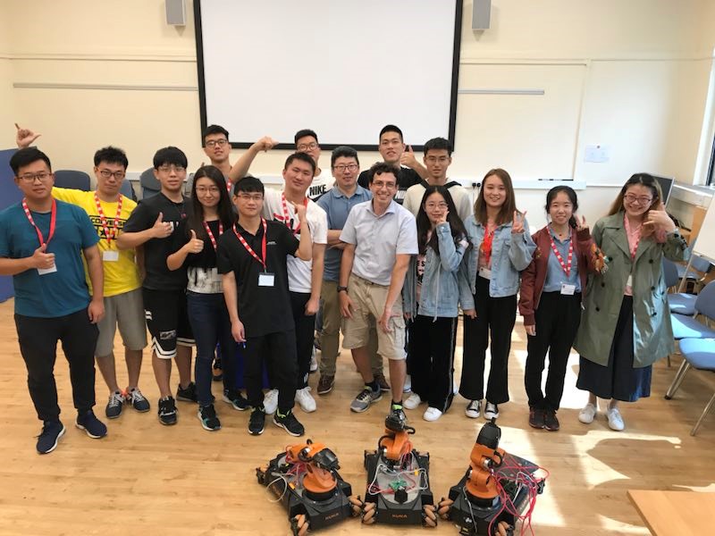 在第一周的学习过程中,卡迪夫大学物理科学与工程学院的Dr.Ze Ji向同学们讲述了ROS(Robot Operating System)平台、Kinematics分析和Python的基础知识,在其博士研究生Piatro的指导下,同学们学会了Linux系统的基本操作、模拟仿真和地图构建,并通过所学知识实现了对小型工业机器人KUKA的运动控制,课程取得了良好的效果,加深了同学们对机器人系统的认识和了解。