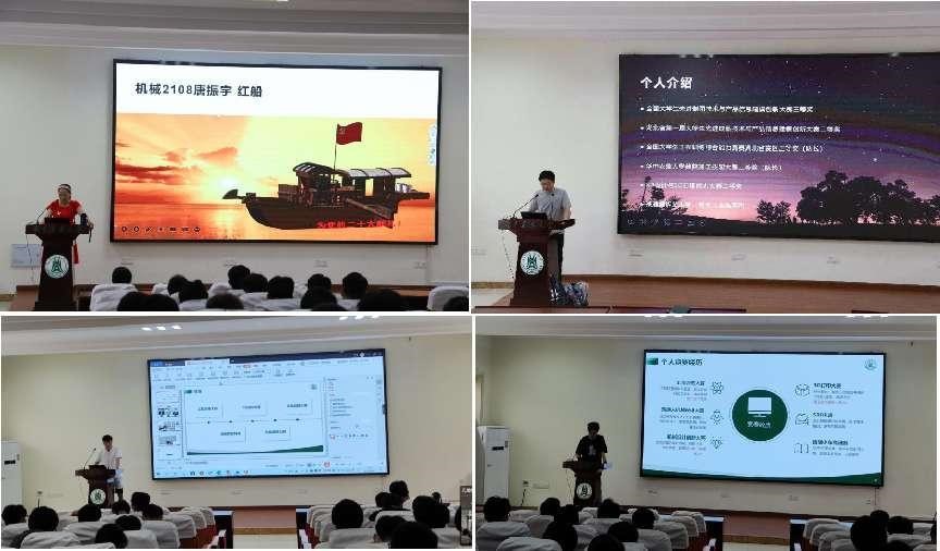 课程结业汇报结束后,参加全国成图大赛、3D打印比赛、数控比赛、机械创新设计大赛、工程训练比赛等学科竞赛的学长和同学们进行经验分享,学长们满屏的奖状和他们平时的勤奋引来听众们阵阵赞叹声。最后是保研浙江大学大学和考取上海同济大学学长也带来了他们的学习成长经验,他们每一个人都毫无保留的分享着自己的经验,希望自己的分享能帮助到更多的学弟学妹们。
